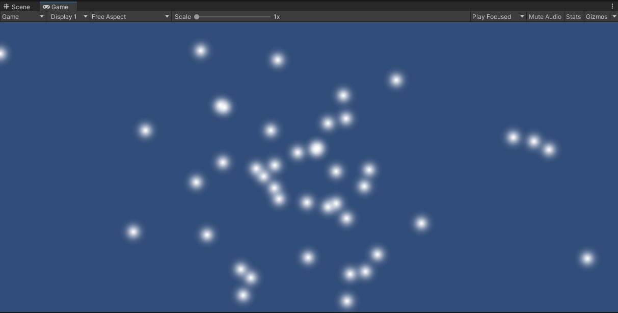 Scene 탭 혹은 Game 탭에서는 하얀 동그라미가 퍼져나가는 이펙트 효과가 보일 것이다.